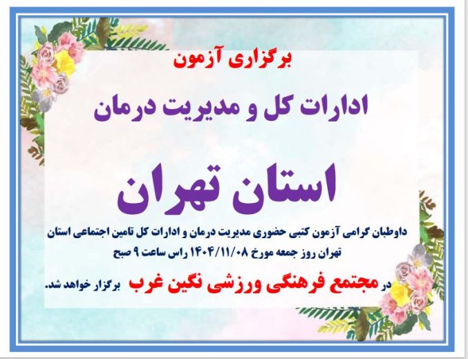 برگزاری آزمون مدیریت درمان و ادارات کل تامین اجتماعی استان تهران